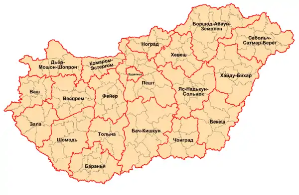 | Административное деление Венгрии на медье | ||||||||||||||||||||||||||||||||||||||||||||||||||||||||||||||||||||||||||||||||||||||||||||||||||||||||||||||||||||||||||||||||||||||||||||||||||||||||||||||||||||||||||||||||