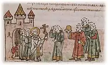 - Посольство суздальцев к Михалку Юрьевичу Владимирскому с просьбой о прощении и приходе в Суздаль.. runivers.ru. Дата обращения: 24 ноября 2021.