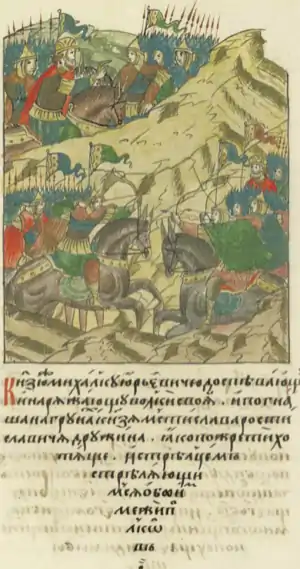 ![]() Сражение полков Михаила I и Мстислава Безокого | |||