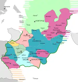 Заняв Киев, Юрий вернул Святославу Курск и отдал Туров. Сыновьям дал: Ростиславу — Переяславль, Андрею — Вышгород, Борису — Белгород, Глебу — Канев, Васильку — Суздаль.