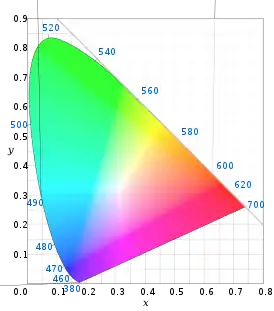 - Основываясь на докладе Американского оптического общества (OSA) о колориметрии 1922 года[2], МКО провела свою восьмую сессию в 1931 году с целью выработки международного соглашения по колориметрическим характеристикам и обновления рекомендаций OSA на основе работ последнего десятилетия[3]. На этой сессии, проходившей в Кембридже, Великобритания, комиссия утвердила эталонную цветовую модель CIE XYZ, заданную в строгом математическом смысле, при этом функции цветового соответствия были определены для 2-градусного поля зрения (использовался соответствующий колориметр). С тех пор модель CIE XYZ является мастер-моделью практически всех остальных цветовых моделей, используемых в технических областях.