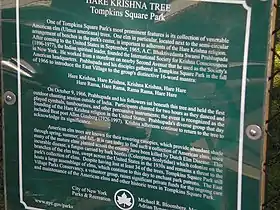 Узнав о том, что известный поэт-битник Аллен Гинзберг поёт мантру «Харе Кришна» на антивоенных маршах и на своих поэтических вечерах, ученики Прабхупады послали ему приглашение посетить храм на Второй Авеню[146]. Гинзберг (в то время только что вернувшийся из путешествия по Индии) принял приглашение и начал регулярно посещать киртаны и лекции Бхактиведанты, часто в сопровождении своего друга и любовника Питера Орловски[147]. Привлечение в ряды кришнаитов одного из лидеров контркультурной молодёжи дало миссии Бхактиведанты мощный толчок[147][148][149]. Гинзберг оказал Бхактиведанте материальную поддержку, подарив ему две фисгармонии и пожертвовав 200 долларов на иммиграционного адвоката[150][151].