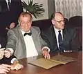 Василий Смыслов (слева) и Всеволод Богданов во время подписания диплома лауреата.