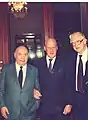 Президент Леонардо-клуба Александр Яковлев (слева) и действительный член Клуба Василий Смыслов (справа) с лауреатом Международной Леонардо-премии Жоао Авеланжем.