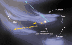 Межзвёздная среда в окрестностях Солнечной системы неоднородна. Наблюдения показывают, что Солнце движется со скоростью около 25 км/с сквозь Местное межзвёздное облако и может покинуть его в течение следующих 10 тысяч лет. Большую роль во взаимодействии Солнечной системы с межзвёздным веществом играет солнечный ветер.