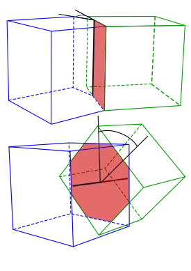 Простейшим видом границ являются границы, где ось вращения параллельна плоскости границы. Граница может образовываться как одиночными смежными зёрнами или кристаллитом, который постепенно изогнут внешней силой. Энергия, связанная с упругим изгибом решётки, может уменьшаться введением дислокаций, которые по-существу являются вклинивающимися атомными полуплоскостями, создающими постоянную разориентацию между двумя частями.