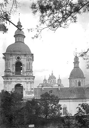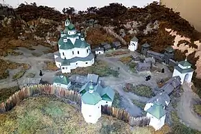 В 1676 году территория была сожжена после пожара, начавшегося в деревянном кафедральном соборе Преображения. С помощью Ивана Савёлова, монаха, жившего в монастыре и позже ставшего патриархом Московским Иоакимом, монастырский комплекс был реконструирован. Двумя годами позднее, с помощью казацкой общины, недалеко от монастырской больницы была построена Благовещенская церковь.