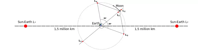 Перелет с 200 км LEO парковочной орбиты Земли до гало-орбиты около точек Лагранжа Солнце-Земля (СЗ) L1 или L2 требует около 3200 м/с и занимает около 3 месяцев. Затраты на поддержание гало-орбиты у точек СЗ L1 или СЗ L2 оцениваются не более чем в 5 м/с за каждый год.[20]