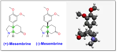 В 1971 году был предложен первый асимметричный полный синтез (+)-мезембрина[9]. Четвертичный углерод был введён путём асимметричного аннелирования по Робинсону, опосредованного с помощью L-пролина.