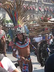Индейское влияние также заметно в традиционной одежде мексиканцев, например христиане носили сандалии хуараче, которые носили индейские группы науа до колонизации. Пончо и серапе, традиционные элементы мужской одежды также имеют индейское происхождение. Серапе выступало основным мужским одеянием для мужчин народов науа и других индейцев мексиканской долины. Ребозо, широкий женский платок и хипиль — платье-халат, также являются частью традиционной одежды женщины и имеет индейское происхождение.