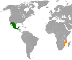- Интересы Мексики в Мозамбике представлены через посольство в Претории (ЮАР)[9].