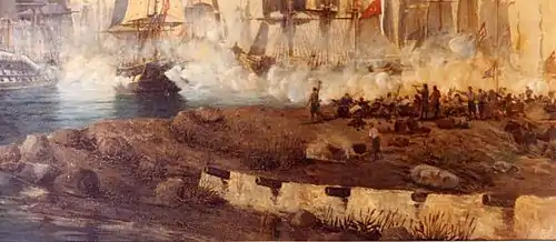 В морском сражении 8 сентября 1822 года, на виду стрелявших по туркам береговых батарей, объединённый флот трёх греческих островов одержал верх и османский флот «бежал, гонимый греческими брандерами»[6]:В-276. При этом, именно крики «благородного старейшины Мексиса, взывавшего к Отечеству, Вере и Чести»[10], поощряли героя того сражения, брандериста Космаса Барбациса, направить свой брандер на турецкий флагман.
