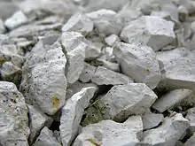 Мел (СаСО3) — разновидность известняка, осадочная горная порода органического (зоогенного) происхождения, состоящая из скрытокристаллического кальцита. Имеет белый цвет, мягкая и рассыпчатая, нерастворимая в воде[1]. Показатель преломления 1,5