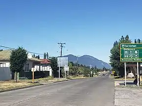 Поселок расположен в 78 км на восток от административного центра области города Темуко.
