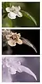 Цветки собраны в ложные кольца по 6—12; чашечка с нижними шиловидными зубцами, длинноволосистая и желёзистая; венчик синевато-белый или бледно-лиловый. Четыре тычинки, пестик с четырёхраздельной верхней завязью и длинным столбиком.