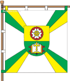 Современный «малый» герб Мелитополя утверждён 29 августа 2003 года. Он представляет собой двухцветный жёлто-зелёный щит, в верхней части которого изображён цветок черешни, а в нижней — открытая книга и крест. «Большой» герб включает в себя также два молота и жёлто-синюю ленту с надписью «Мелітополь». Флаг города представляет собой двухцветное полотнище (жёлтая и зелёная полосы) с двухсторонним изображением герба.[17][18].