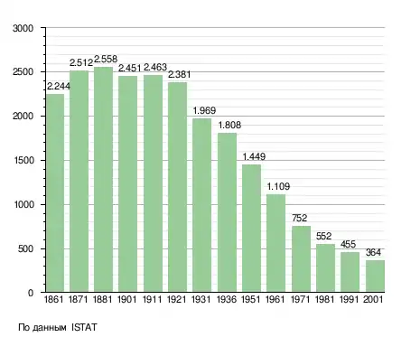 Население составляет 326 человек (2008 г.), плотность населения составляет 12 чел./км². Занимает площадь 28 км². Почтовый индекс — 12020. Телефонный код — 0175.