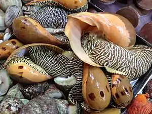 - Morton, B. The Diet and Prey Capture Mechanism of Melo melo (Prosobranchia: Volutidae). (англ.) // J. Moll. Stud. : journal. — 1986. — Vol. 52, no. 2. — P. 156—160. — doi:10.1093/mollus/52.2.156.