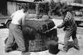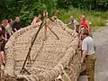 Процесс смоления корзины для плавания «Тигр». Подобные плавсредства использовались в Древней Месопотамии для ловли рыбы и перевозки грузов через реки.
