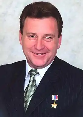 Начиная с лета 1992 года, на Су-25УТГ подготовил большую группу лётчиков ВМС для базирования на тяжёлом авианесущем крейсере «Адмирал Кузнецов». За эту работу 7 марта 1995 года был удостоен звания Герой России с вручением медали «Золотая Звезда» (№ 125).