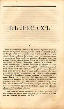 - Полное собрание сочинений П.И. Мельникова (Андрея Печерского). — 1-е посмерт. полн. изд., доп., свер. и вновь просмотр. по рукописям. — СПб.—М. : Т-во М.О. Вольф, 1897. — Т. 3: В лесах. Часть первая. — 400 с.