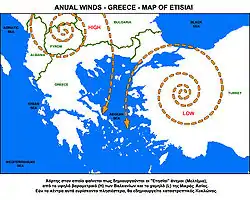 - Etesian wind (англ.). Encyclopædia Britannica (2018). Дата обращения: 9 мая 2018.