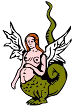 Мелюзина (Мелюзайн, Мелизанда) — фея из кельтских и средневековых легенд, дух свежей воды в святых источниках и реках. Часто изображалась как женщина-змея или женщина-рыба от талии и ниже (ср. морская дева), иногда с двумя хвостами. Выходит замуж за смертного, поставив ему условием, чтобы он никогда не видел её в зверином обличье. Когда он застает её в таком виде, бросает его.