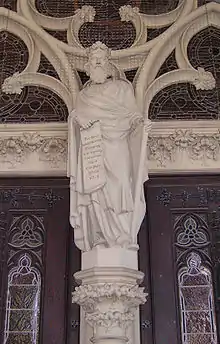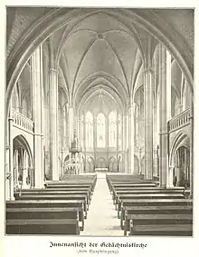 С внутренней стороны портала находится статуя ангела с открытой книгой, где написано: нем. Selig, die Gottes Wort hören u. bewahren.
