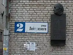Мемориальная доска Александру Ильичу Лейпунскому (1903—1972) установлена на правой стороне фасада дома № 2 по улице Лейпунского. Сам Лейпунский ни в этом доме, ни на этой улице никогда не жил. Главное назначение мемориальной доски — объяснить, в честь кого названа улица.