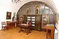 В музее есть помещение, в котором была воссоздана обстановка комнаты учителя. Кровать расположена в углу, на ней лежит кожаная подушка и домотканое покрывало. Секретер и стул расположены напротив двери. На секретере стоит глобус, есть подсвечник и рукописи произведений поэта. Среди рукописей можно увидеть текст сатирической песни «Всякому городу нрав и права». На скамье стоит посуда: миски, медная кружка[1].