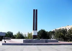 Мемориал «Павшим за Родину» открыт 9 мая 1971 года на новой площади Победы. Он представляет собой две гранитные стелы, позднее с четырёх сторон на них были размещены барельефы воинов 1918—1920 и 1941—1945 годов, винтовки с серпом и молотом. Рядом находится вечный огонь. Факел с огнем был зажжён в городе Новочеркасске, потом его доставил в Азов на бронетранспортёре подполковник Г. К. Волков.