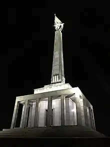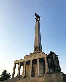 На кладбище похоронено 6845 солдат. Памятник построен по аналогии с Дворцом культуры и науки в сталинском архитектурном стиле. В 1961 году он был объявлен национальным памятником культуры. Его архитектором был Ян Светлик. На вершине 42-метрового обелиска была установлена 12,5-метровая статуя солдата словацким скульптором Александром Тризуляки.