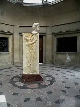 В центре зала, занимающего весь внутренний объём здания, установлена мраморная герма, сделанная из мрамора Максом Клингером, увенчанная бюстом Аббе. На боковых и тыльной стороне гермы размещены барельефы, посвящённые основному вкладу Аббе в астрономическое приборостроение, усовершенствование микроскопа и в укрепление тесной связи науки и техники.