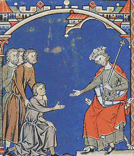 ![]() Мемфивосфей просит прощения у Давида. Иллюстрация из Библии Мациевского | |
