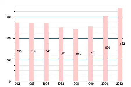 Население коммуны в 2011 году составляло 679 человек[6], в 2012 году — 680 человек[7], а в 2013-м — 682 человека[5].