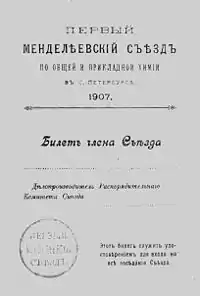 - I съезд — 20—30 декабря 1907 года, Санкт-Петербург — Съезд памяти Д. И. Менделеева. Проблемы химии и физики.