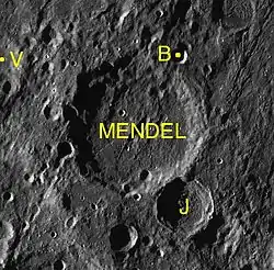- Образование сателлитного кратера Мендель V относится к нектарскому периоду[1].