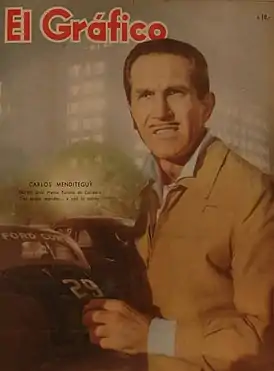 Карлос Мендитеги родился 10 августа 1915 в Буэнос-Айресе. Он был игроком в поло. В автоспорте Карлос дебютировал в 1951 на Кубке Перона за рулём Alfa Romeo.