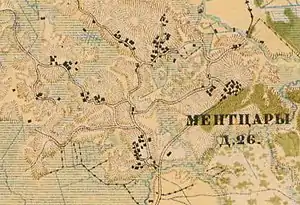 МЕНЦАРЫ (МЕНИЦАРЫ) — деревня владельческая, при колодцах, 27 дворов, 89 м. п., 96 ж. п.; (1862 год)[17]