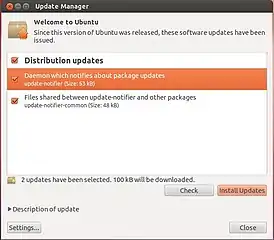 Менеджер обновлений (англ. Update Manager) — это программа для обновления установленного программного обеспечения в дистрибутивах ОС Linux, основанных на Debian или использующих систему управления пакетами APT. Менеджер обновлений устанавливает обновления безопасности (закрывающие «дыру» в системе, то есть ликвидирующие какую-либо уязвимость в данном ПО) или просто улучшающие функциональность программы. Он информирует пользователей о доступных обновлениях, перечисляя их в алфавитном порядке, так что пользователи могут выбирать какие обновления устанавливать. Первоначально написана для Ubuntu, однако сейчас является частью стандартной системы Debian, а также других систем, использующих APT.