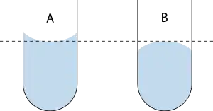 В случае, если жидкость смачивает твёрдое тело, мениск образуется вогнутым в жидкость — вогнутый мениск, если не смачивает — выпуклым. Над вогнутым мениском давление паров жидкости ниже, над выпуклым выше, чем над плоской свободной поверхностью жидкости. Этим явлением объясняется ряд так называемых капиллярных эффектов, например, всасывание жидкости в пористые материалы, появление разницы уровней между свободной поверхностью жидкости и сообщающейся с ней тонкой трубкой, явление капиллярной конденсации и так далее.