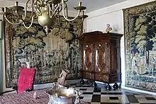 Интерьеры дворца (не менее тринадцати комнат) были отделаны делфтской плиткой с кобальтовой росписью к 1717 году, до настоящего времени дошли лишь четыре из них[19].