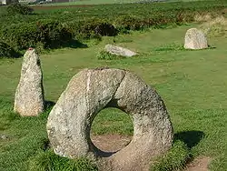 В Корнуолле есть только один известный камень этого типа с круглым отверстием, известный как «дырявый камень Толвена», расположенный в саду в 6 км от Хелстона.