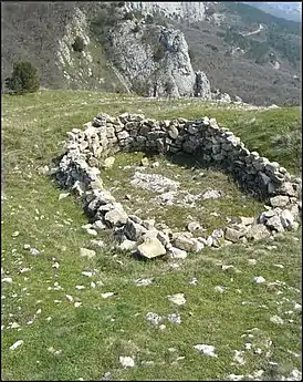 Небольшая крепостца была построена в XII веке местными владетелями для охраны и надзора за горным проходом. Укрепление площадью 0,3 гектара занимало выступ скалы, окружённой обрывами и доступный с севера и востока, где была сооружена стена общей длиной около 100 м с проходной башней. Внутри имелась маленькая церковь (размером 6,35 на 3,75 м), несколько жилых и хозяйственных построек. Источника воды в крепости не было, на основании чего исследователи заключают, что исар предназначался больше для функций сторожевого поста, чем боевой единицы. Укрепление погибло в XIII веке в какой-то междуусобной борьбе местных горских феодалов[1].