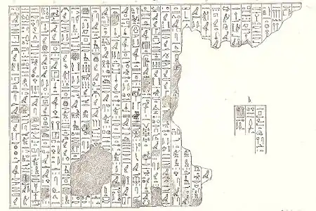 ![]() Деревянная палитра писца, принадлежащая царскому чиновнику Уркаухети, с картушем царя Мерикара, найденная, вероятно, в гробнице близ Асьюта или Меира вместе с медной жаровней Мериибра Хети. Лувр (E 10500) | |