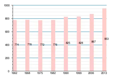 | 774 | 778 | 772 | 776 | 825 | 828 | 867 | 905 | 975 | 970 | 953 |