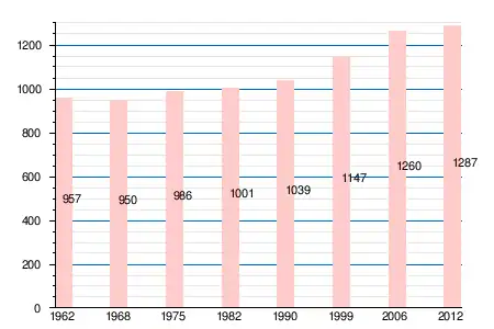 | 957 | 950 | 986 | 1001 | 1039 | 1147 | 1260 | 1292 | 1287 | 1287 |