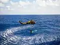 Через несколько минут после приводнения прибыл спасательный вертолёт, он приподнял спускаемую капсулу, Шепард выбрался через люк и перебрался в вертолёт, который доставил его и капсулу на борт авианосца USS Lake Champlain. С момента посадки на воду до подъёма на борт авианосца прошло всего 11 минут[10].