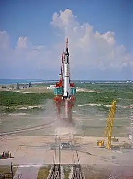 | 3 октября 1962 | 16 | Атлас D | Меркурий-Атлас-8 | 1370,0 | 1962-052A | Третий орбитальный пилотируемый полёт — астронавт Уолтер Ширра, 6 витков за 9 часов 13 минут[20]. |