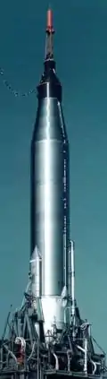 | 24 марта 1961 | Редстоун | Меркурий-Редстоун-BD | 1141,0 | — | Суборбитальный полёт, добавлены ускорители (Booster Development, рус. разработка ускорителей), скорость 8200 км/ч. За 8 мин 23 сек достиг высоты 180 км, дальность 500 км[11]. | |